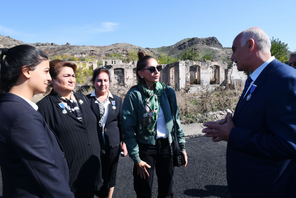 Birinci xanım Mehriban Əliyeva sakinlərlə söhbət etdi. Ata-baba yurdlarına geri dönən sakinlər torpaqlarımızın işğaldan azad olunmasına görə minnətdarlıqlarını bildirdilər. Qubadlı sakini öz hazırladığı əl işindən ibarət kəlağayını birinci xanıma təqdim etdi.