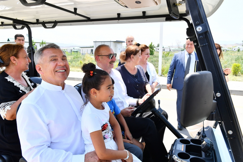 President Ilham Aliyev and Rustam Minnikhanov toured the village of Aghali by electric carts.