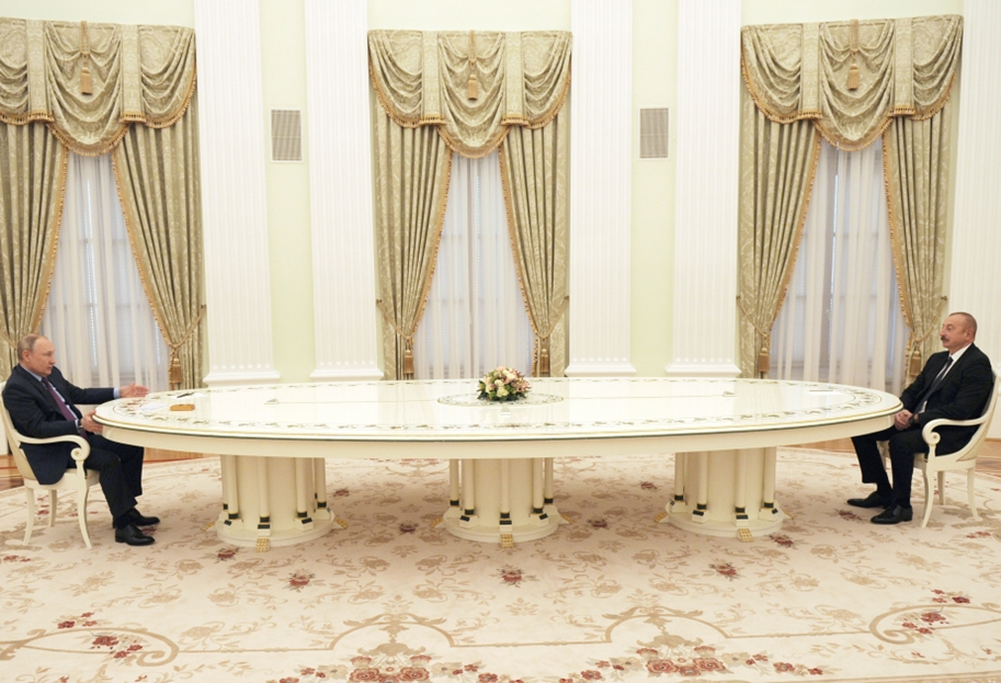 PRESIDENT OF AZERBAIJAN ILHAM ALIYEV, PRESIDENT OF RUSSIA VLADIMIR PUTIN HELD ONE-ON-ONE MEETING
