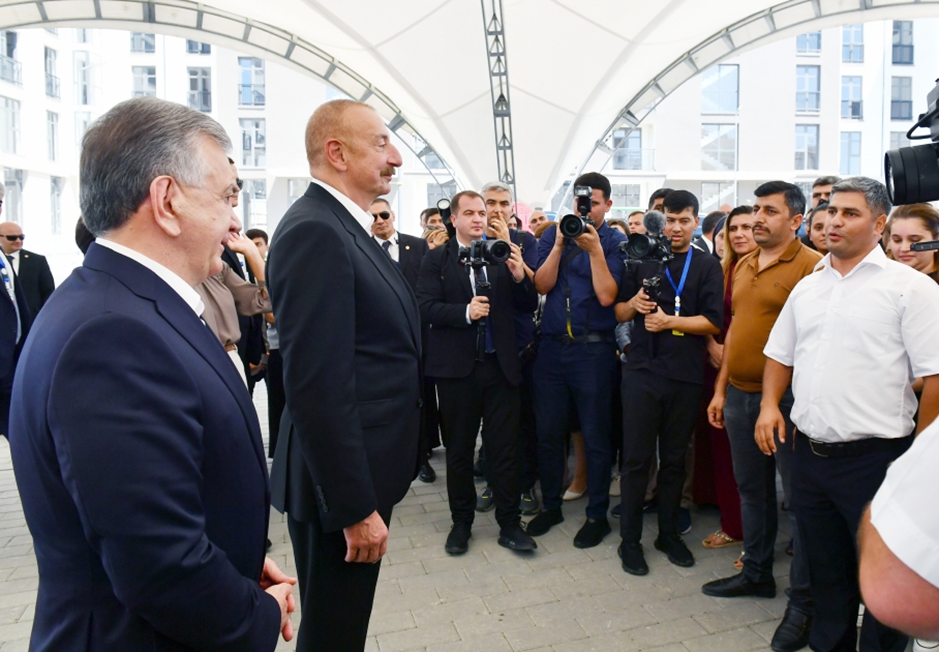 President of the Republic of Azerbaijan Ilham Aliyev, First Lady Mehriban Aliyeva and President of the Republic of Uzbekistan Shavkat Mirziyoyev and his wife Ziroatkhon Mirziyoyeva have met with the newly resettled residents of the MIDA residential complex in Fuzuli.