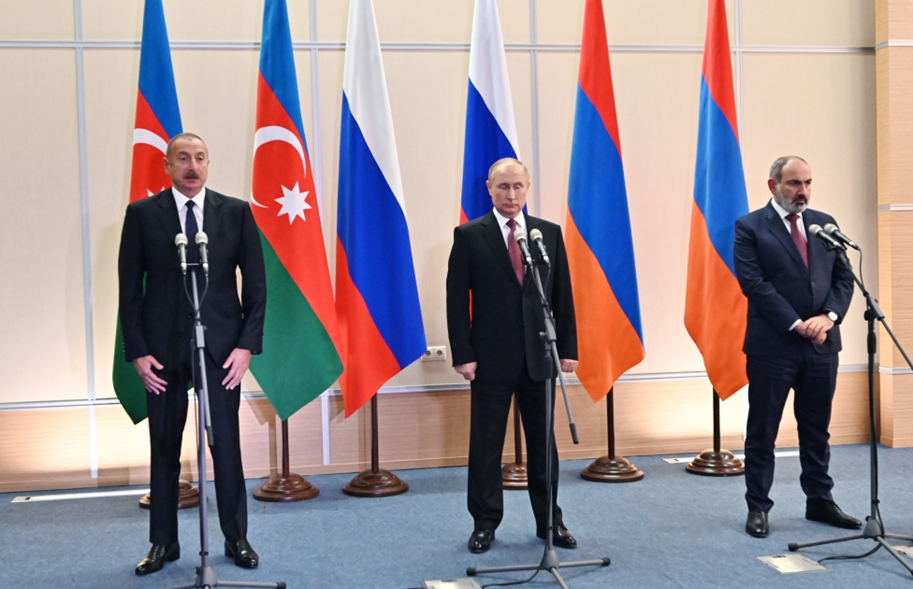 Following the trilateral meeting among President of Russia Vladimir Putin, President of Azerbaijan Ilham Aliyev and Prime Minister of Armenia Nikol Pashinyan, the Russian President, the Azerbaijani President and the Armenian Prime Minister have made press statements.