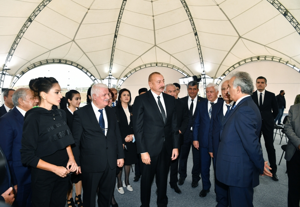 President Ilham Aliyev and First Lady Mehriban Aliyeva then laid the foundation stone for Fuzuli Memorial Complex and for the restoration of the city of Fuzuli.