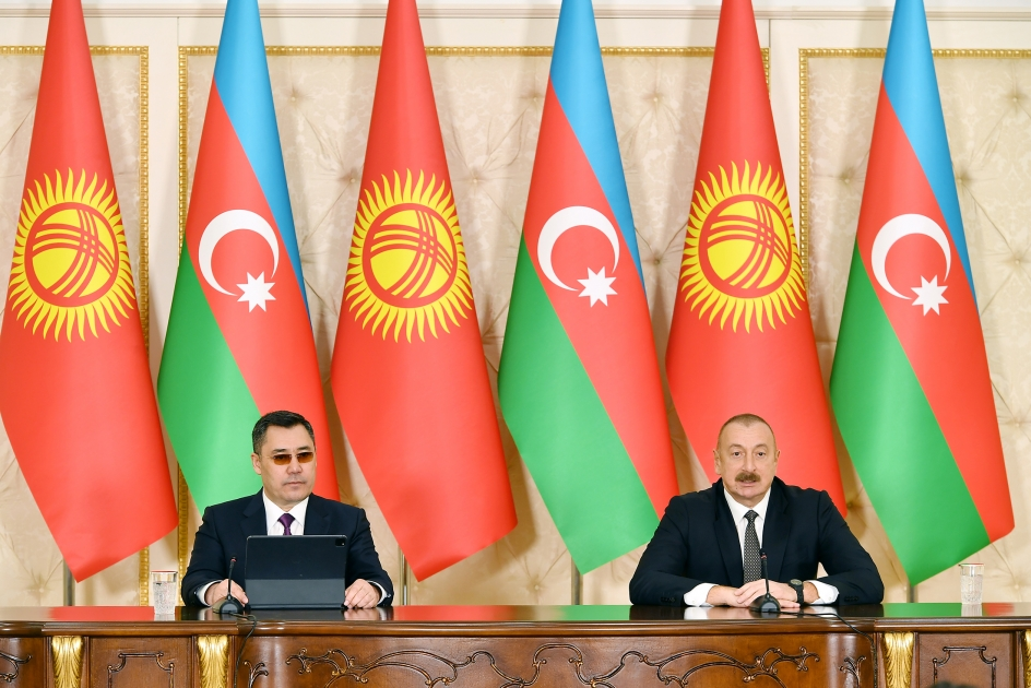 Mr. President, I once again cordially welcome you to Azerbaijan. I am glad that you have accepted my invitation and are paying an official visit to our country. We met at the end of last year. At our first meeting, I invited you to visit Azerbaijan. I am glad that in such a short time, less than six months later, you are visiting Azerbaijan. We see this as a sign of our friendship and brotherhood. Today, during the official visit of the President of Kyrgyzstan to Azerbaijan, we reviewed a wide range of bilateral cooperation and took a thorough look at the issues on the agenda of our cooperation. We have expressed our determination to step up our relations both in private and in the presence of delegations. We are friendly and brotherly states. Today, our relations have reached a qualitatively new level. Ten documents have been signed, and I would like to emphasize two of them - the Declaration on Strategic Partnership and the Memorandum on the establishment of the Interstate Council. Both documents will predetermine the nature and form of our relations. Strategic partnership is a high level of interaction and motivates us for strategic cooperation. Within the framework of the Interstate Council, we will discuss the issues on the bilateral agenda, as well as regional and international issues, more effectively and actively on a regular basis.
