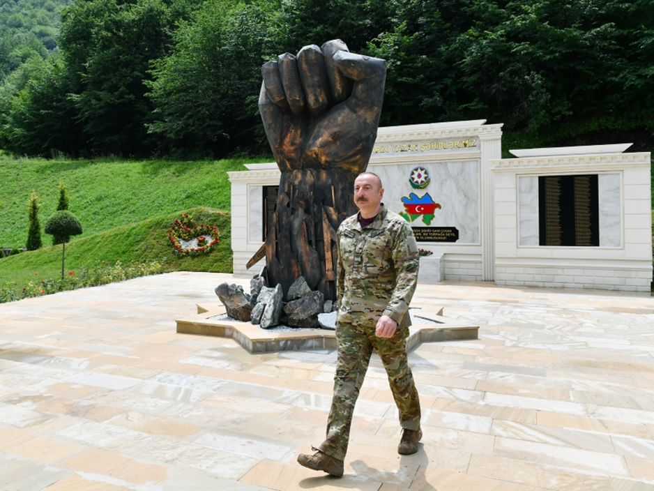 President Ilham Aliyev also planted a sycamore tree, visited the memorial complex erected in memory of martyrs and the “Iron Fist” monument in the territory of the military camp.