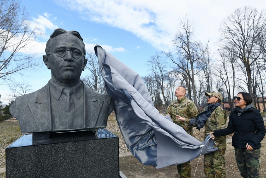 - When I came to Shusha today, I brought the busts of our geniuses Khurshidbanu Natavan, Uzeyir Hajibayli and Bulbul, which were kept in the yard of the Art Museum in Baku for almost 30 years. The House of Culture was located here, and the busts of Uzeyir Bey and Bulbul used to stand here. The hated enemy destroyed the Shusha House of Culture and shot at the busts of our geniuses.