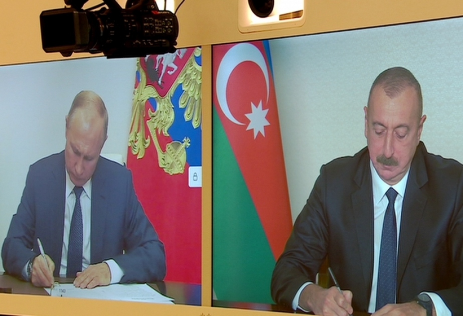 President Ilham Aliyev and President Vladimir Putin signed the statement.