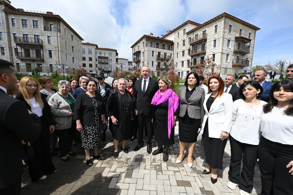 President Ilham Aliyev and First Lady Mehriban Aliyeva also met with the first families who have relocated to Shusha.