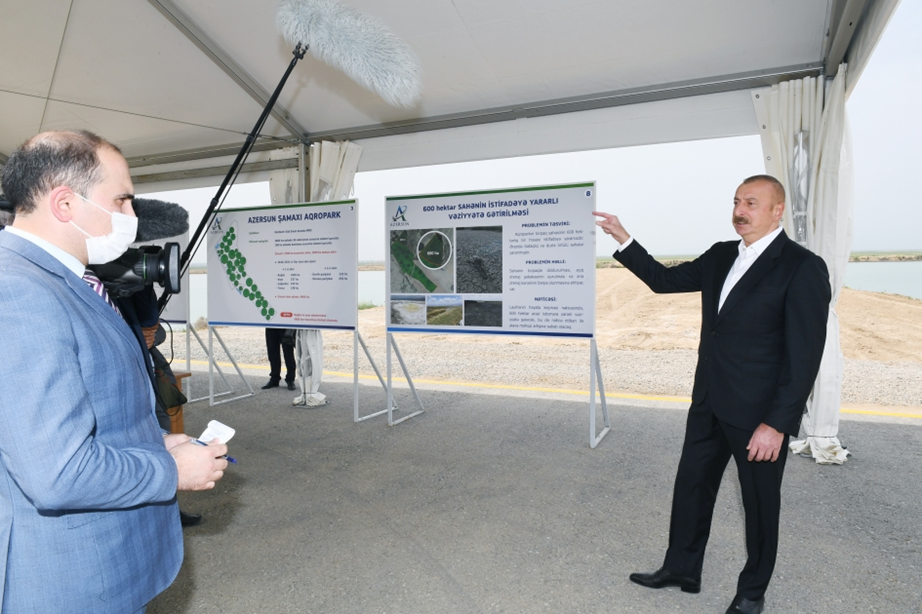 Hajigabul district is not very large in terms of population, it has a population of 77,000 people. However, there are two large agricultural estates here and hundreds of local residents are provided with jobs. For example, Hajigabul is not the most advanced region of our country in terms of soil fertility. Its quality is lower than in other districts. However, despite this, the establishment of these agricultural estates in Hajigabul testifies to the success of our policy because Hajigabul is one of the most difficult places. I was informed today that thousands of hectares of irrigated land are under the pivot in both agricultural parks. The productivity in grain production here is 60 quintals, i.e. six tons per hectare. For comparison, I can say that the yield in Hajigabul district is 30 quintals per hectare. In the country as a whole, the yield is just over 30 quintals. At the same time, the yield in large farms is 60 quintals - twice as high. If this approach is applied to all our large farms, as well as in small ones, then we will complete our work related to food security issues.