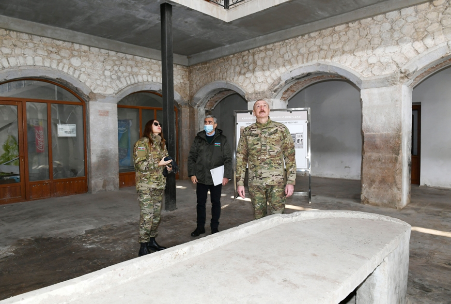 President Ilham Aliyev, First Lady Mehriban Aliyeva and their daughter Leyla Aliyeva visited the Caravanserai historical and architectural complex.