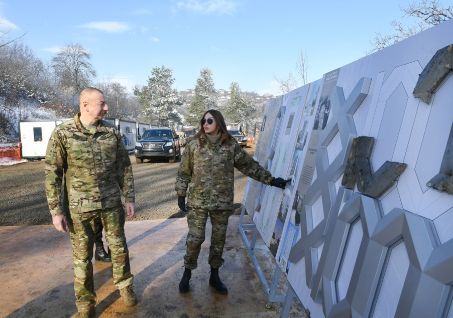 President Ilham Aliyev, First Lady Mehriban Aliyeva and their daughter Leyla Aliyeva arrived at Dashalti village of Shusha district.
