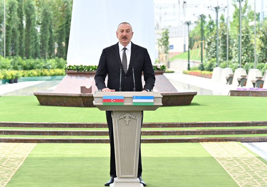 First of all, I would like to express my deep gratitude to Shavkat Miromonovich for the invitation to visit fraternal Uzbekistan. As Shavkat Miromonovich has said, I suspended all official visits due to the pandemic and have not paid official visits for more than two years. And I am paying my first official visit after the pandemic to fraternal Uzbekistan. This is a manifestation of our relations, a manifestation of the brotherhood and friendship between our peoples. I am very grateful to my dear brother Shavkat Miromonovich for the initiative, for creating such a beautiful corner in the center of Tashkent dedicated to the memory of my father Heydar Aliyev. A street, a square, a bas-relief, a beautiful park - this is a truly fraternal attitude towards the memory of the great leader of the Azerbaijani people, towards the entire Azerbaijani people. We in Azerbaijan highly appreciate this. We are very grateful, and we see this as a truly fraternal attitude of our Uzbek brothers to our great leader, to our common history. It is also a sign of respect for the entire Azerbaijani people to whom Heydar Aliyev devoted his entire life. I am very grateful to Shavkat Miromonovich for the kind words about my father. He has very succinctly and accurately described our leader. Heydar Aliyev dedicated his whole life to serving Azerbaijan, and both in the Soviet times and during the years of independence, he was always with his people. In the most difficult times, at times when our people were subjected to aggression and persecution, he always stood next to the people. On 20 January 1990, two years before the collapse of the Soviet Union, he publicly condemned the Soviet leadership for sending the Soviet army to Baku, killing and injuring hundreds of innocent Azerbaijanis. This required great political courage. Because it was still not known back then how much longer the Soviet Union would exist. He did that. He was also with his people in the most difficult times, when the Nakhchivan Autonomous Republic was subjected to aggression, and by leading the Nakhchivan Autonomous Republic he essentially defended this historical piece of Azerbaijan, this ancient land from aggression. It was also on his initiative that the flag of the Azerbaijan Democratic Republic, which existed from 1918 to the 1920, was officially adopted as the state flag in Nakhchivan long before the Soviet Union was consigned to history and Azerbaijan restored its independence. Then there was a period associated with civil war. It was Heydar Aliyev who, by the will of the people, stopped the civil war in 1993 and put our country on the path of development. The strengthening of our statehood, reforms and development - everything in Azerbaijan is associated with his name. And we are proud to be continuing his work. In his political testament shortly before his death, he said addressing the Azerbaijani people: “What I could not finish will be finished by my followers.” We, his followers, are proud that to have implemented all his precepts and, first of all, restored historical justice, restored the territorial integrity of Azerbaijan.