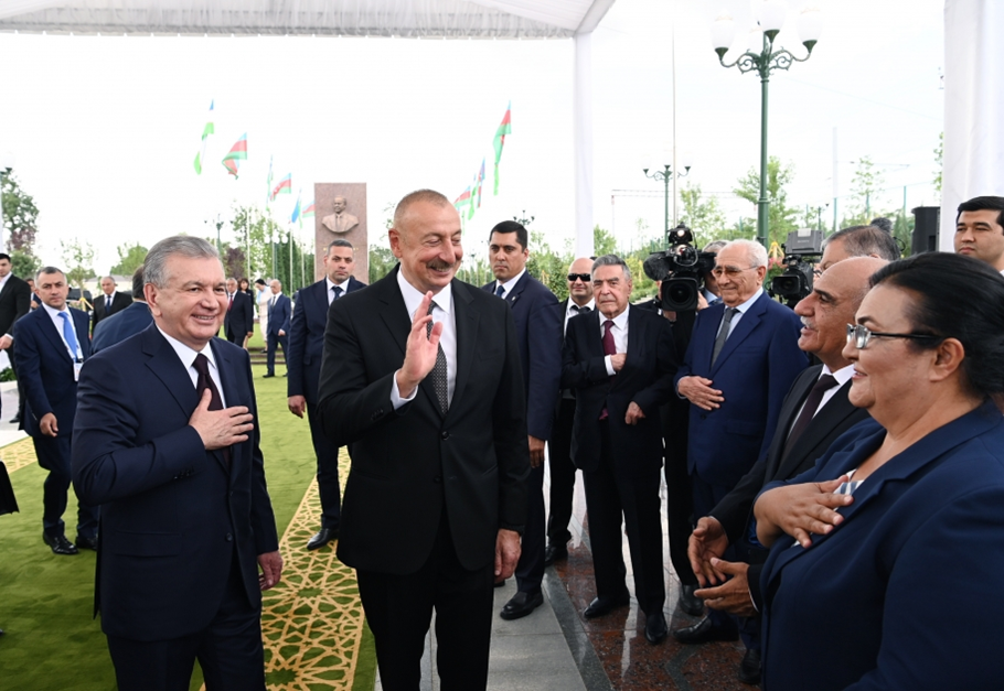 Dear friends, today, remembering the good name of the national leader of Azerbaijan, I would like to quote the words of great Uzbek poet Hamid Alimjan: “A person is alive as long as the memory of him is alive.” I am convinced that these words are perceived in the same way both in Uzbekistan and in Azerbaijan. I am convinced that this memorial complex, dedicated to the great man and patriot, builder of the future youth of both Azerbaijan and Uzbekistan look up to today, Heydar Alirza oglu Aliyev, will become a vivid symbol of the unbreakable friendship of our countries and peoples, a revered place for residents and visitors to our native Uzbekistan. Once again, I want to express my sincere gratitude. We have been preparing for this visit for a very long time. But there have been a few objective reasons, there has been pandemic. I want to say that Ilham Heydar oglu is paying his first official visit after the pandemic to Uzbekistan. This is very symbolic. I want to say again: “Welcome to Uzbekistan.” Today, all the people of Uzbekistan, all the people are already waiting for you. I think that this visit will be a historic visit. Of course, we will talk about everything today. This will give a great impetus to our relations, and we will take our relations to a completely different level in the future because we have been preparing for this for a long time. Mr. President, welcome to Uzbekistan.